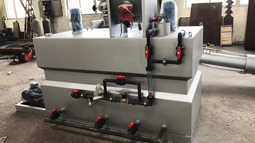 加藥裝置根據(jù)所需藥劑濃度,在攪拌箱內(nèi)配置,經(jīng)攪拌器攪拌均勻后投入溶液箱、用計(jì)量泵向投藥點(diǎn)或指定系統(tǒng)中輸送所配制的溶液。成套加藥裝置具有結(jié)構(gòu)緊湊、安全簡(jiǎn)單、操作使用簡(jiǎn)便等特點(diǎn)。加藥裝置還可根據(jù)用戶不同工藝流程的要求,進(jìn)行有針對(duì)性的設(shè)計(jì)、配置必要的部件,實(shí)現(xiàn)自動(dòng)遠(yuǎn)程控制等功能。