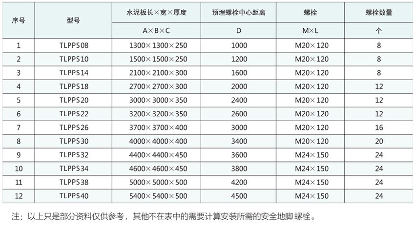 ※ 安裝時預埋螺栓以及水泥板的尺寸