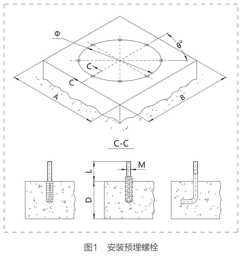 ※ 安裝時(shí)預(yù)埋螺栓以及水泥板的尺寸